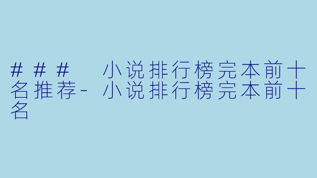 在当今网络文学盛行的时代,许多优秀的小说作品脱颖而出,成为读者心中的经典。以下是完结前十名的小说排行榜,供广大书迷参考。