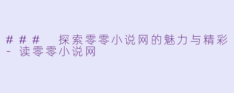 在当今的网络时代,阅读方式发生了翻天覆地的变化。零零小说网作为一个优秀的在线小说平台,吸引了无数喜爱文学的读者。这个网站汇集了各类题材的小说,从玄幻、言情到科幻、悬疑,应有尽有,满足不同读者的需求。